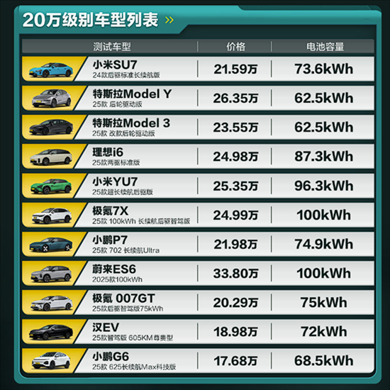 而YU7同样为最入门版,搭载96.3度电池,官标CLTC续航835公里,实际跑了420公里,在20万组别里跑得里程最远。